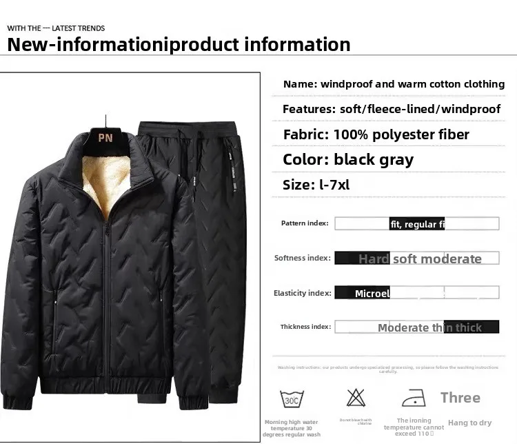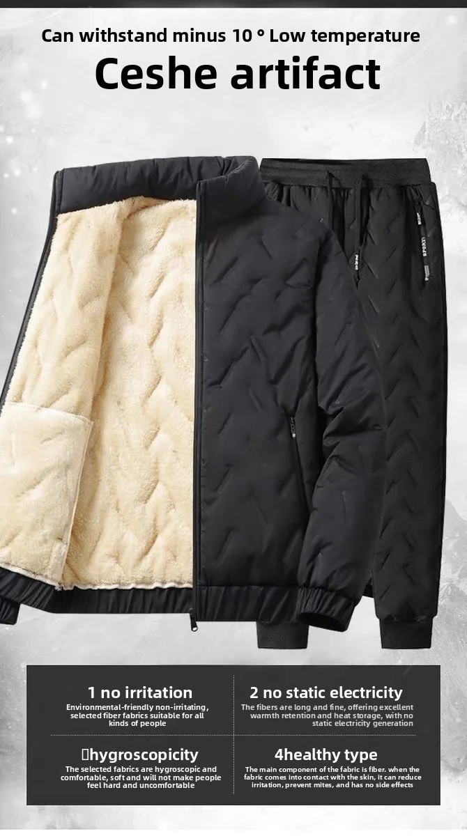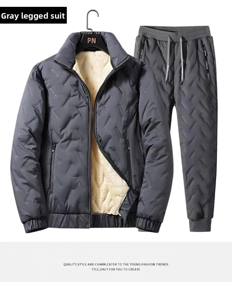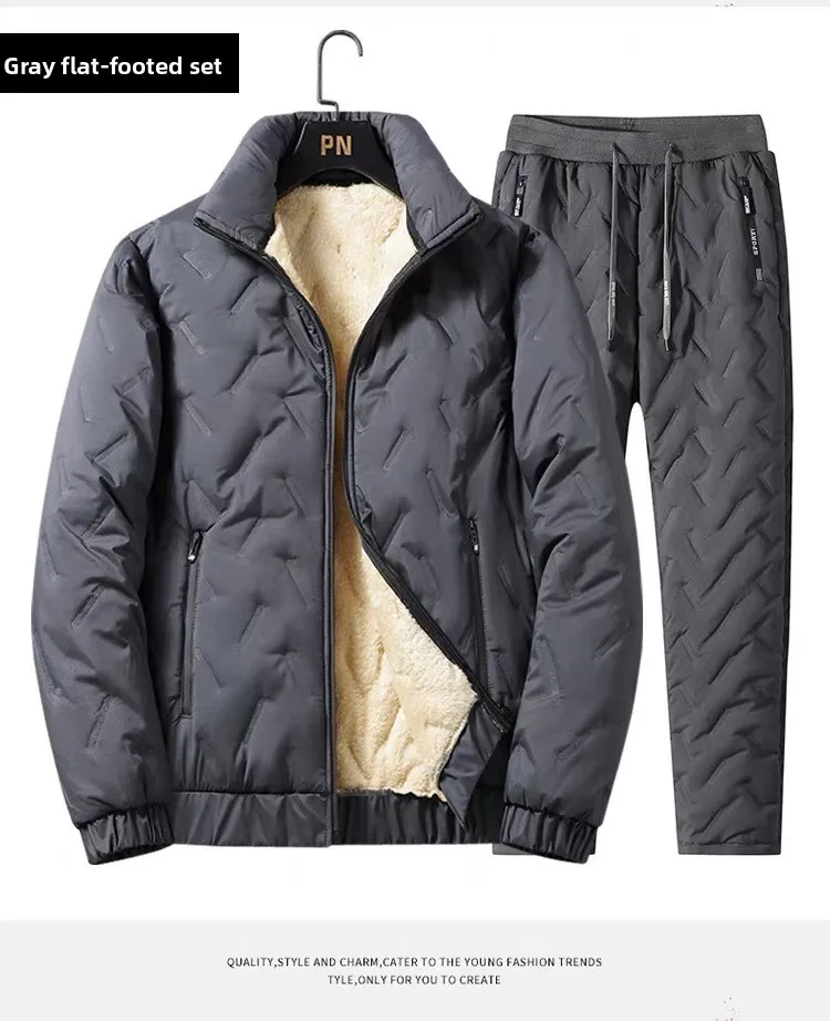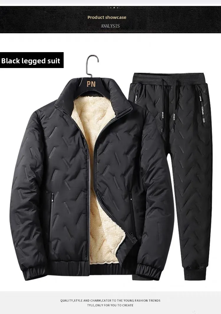 Winter Warm Suit Men's Two-piece Set Autumn and Winter Thickened Casual Trousers Warm Cotton Jacket Sweater Jackets Man